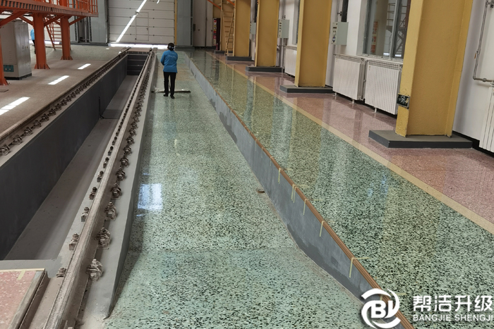 北京幫潔升級(jí)水磨石公司針對(duì)鐵路站段和機(jī)車車輛制造工廠等高磨損、重污染環(huán)境的特點(diǎn),對(duì)地面進(jìn)行耐磨、防污處理。經(jīng)過專業(yè)處理后的新水磨石可謂“脫胎換骨”,可呈現(xiàn)大理石般的裝飾效果,光滑如鏡。