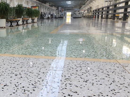 2017年沈陽(yáng)蘇家屯車(chē)輛段新水磨石地面在經(jīng)過(guò)升級(jí)水磨石(固化、打磨、結(jié)晶、防油)等處理后